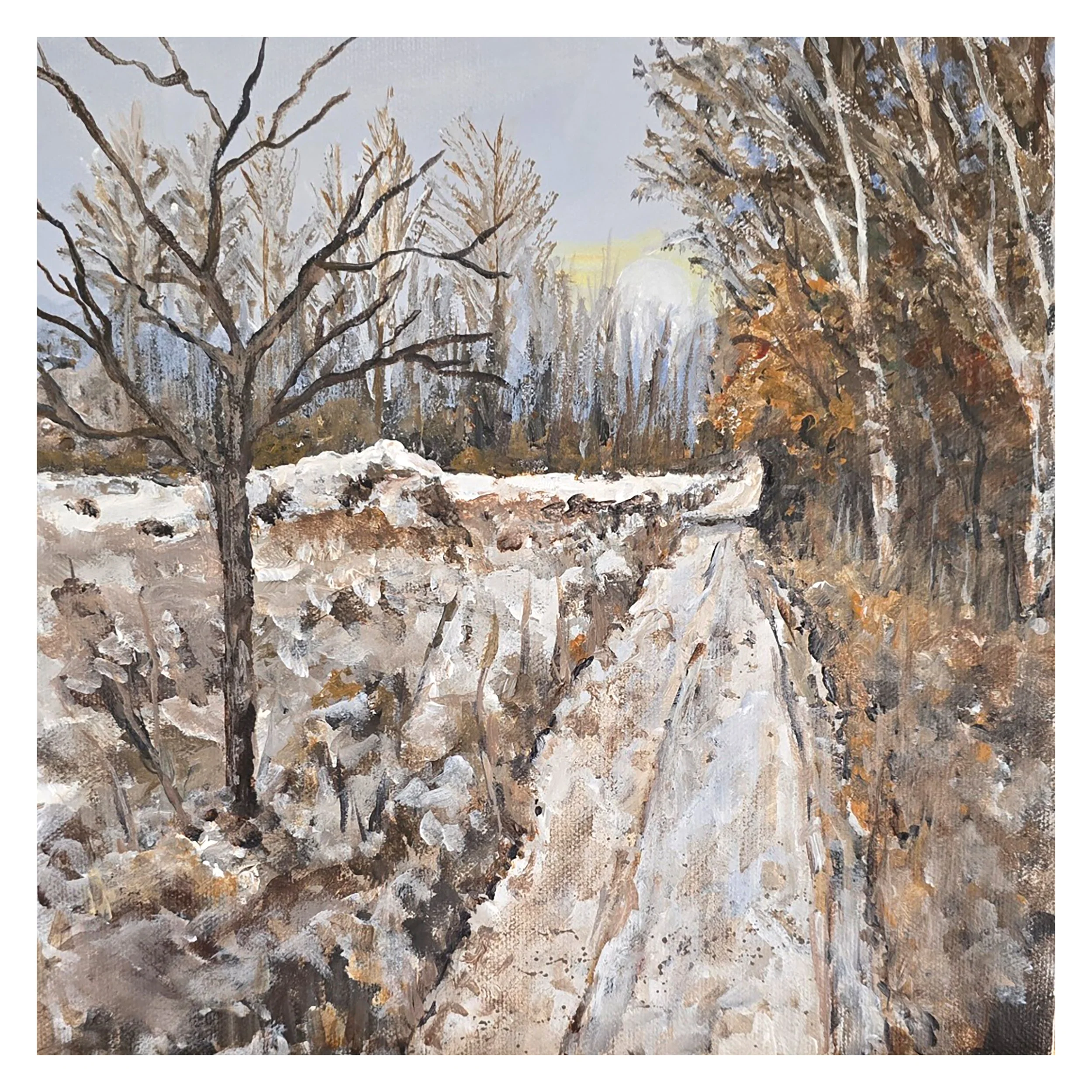 Most of us have walked down a similar lane to this in the depths of winter with the lumps of snow banked against the lanes, hedges and trees. Yet, the image oozes a warmth to it making the walk much more enjoyable!