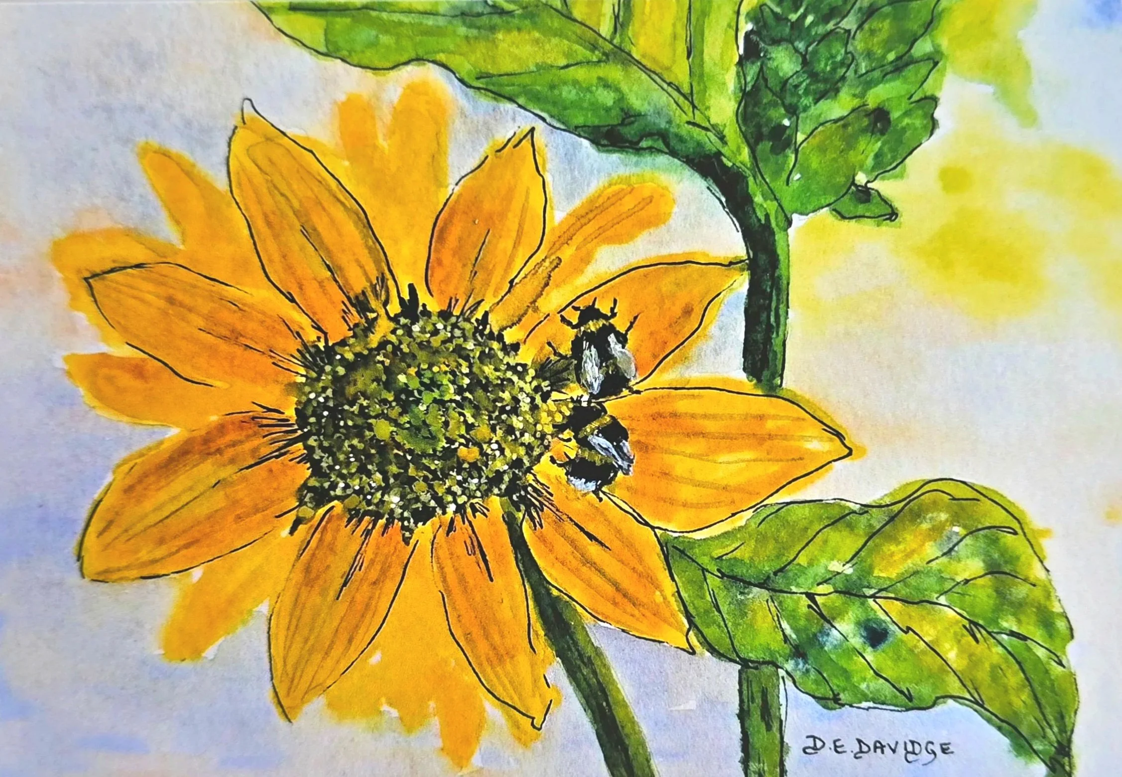 What a lovely bright image of a sunflower with the bees being attracted to the beauty of sunflowers giving the bees much needed nectar.